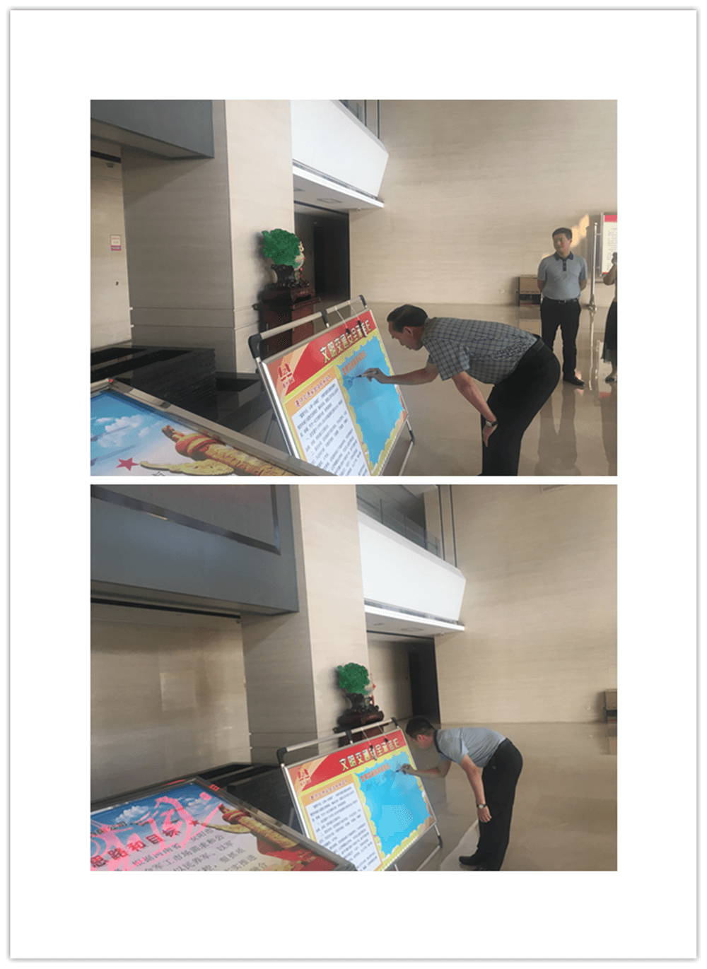 簽訂“遵守交通安全法規(guī)承諾書”。公司制作了“遵守交通安全法規(guī)承諾欄”版面十余塊,擺放在醒目位置,以部門為單位,每位員工在版面上進(jìn)行簽名承諾。公司總經(jīng)理郭釧帶頭在《文明交通承諾欄》上簽名,其他領(lǐng)導(dǎo)和部門員工也陸續(xù)進(jìn)行了簽名,通過交通安全承諾簽名,使每位員工時(shí)刻提醒自己,履行自己承諾。