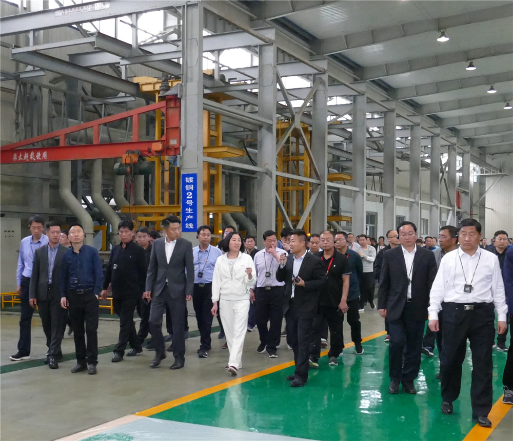 此次觀摩團主要對我公司的表面處理車間電鍍工藝、土壤污染源頭防范、污水處理、危險廢物管理等方面進行考察。總經理郭釧代表集團公司對各位領導的到來表示熱烈的歡迎,并對公司基本情況、環保投入等方面做了簡要介紹。公司環保項目辦主任李宏旺對公司的電鍍工藝、土壤污染源頭防范、污水處理、危險廢物管理做了詳細的介紹。公司的環保治理工作得到了觀摩團的一致好評。
