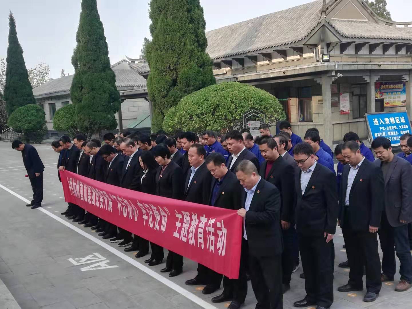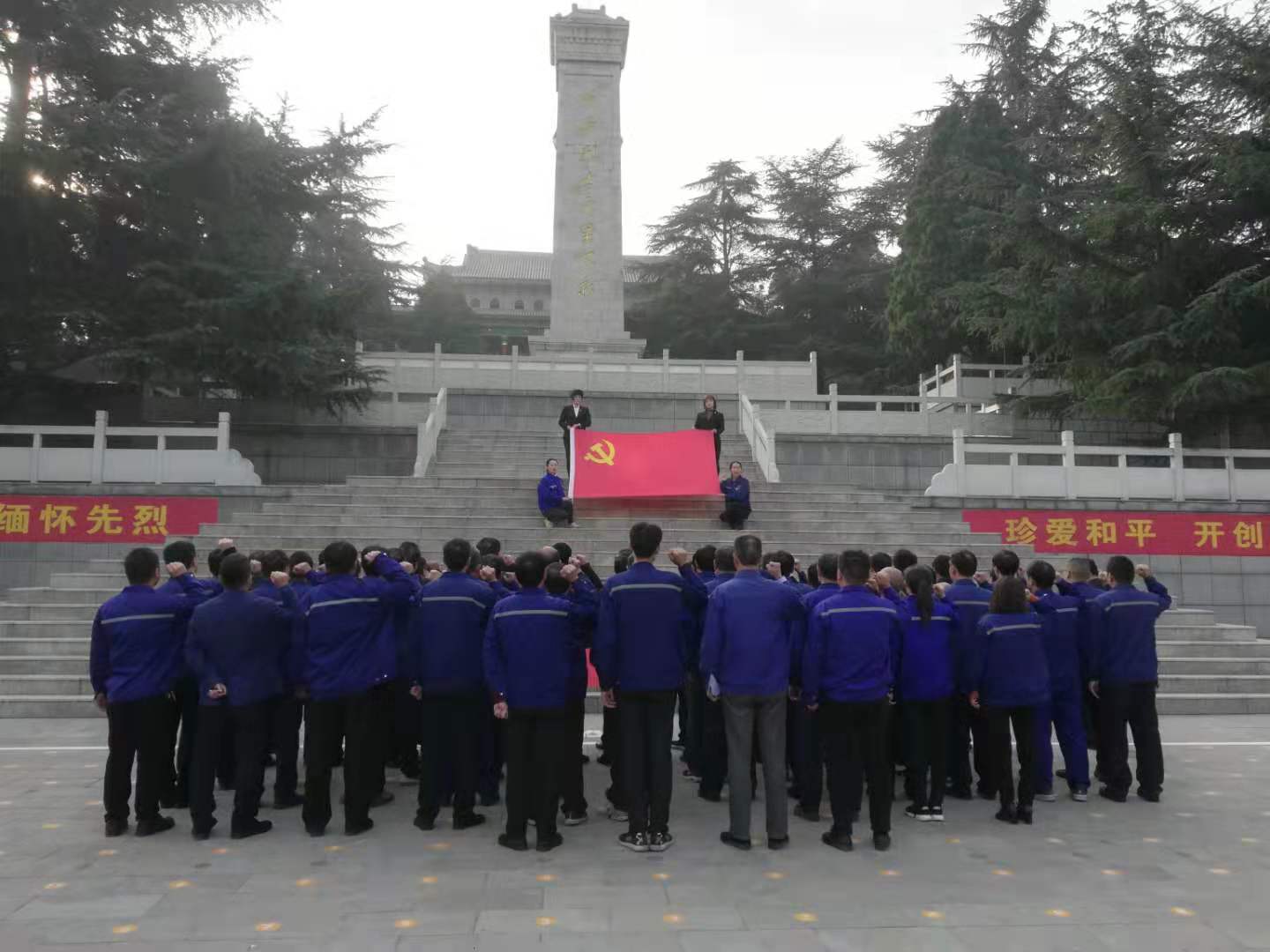 上午8:45時,在雄壯的國歌聲中,全體黨員肅然起敬,仰望革 命烈士紀念碑。在莊嚴肅穆的紀念碑前,全體黨員滿懷崇敬,向革 命烈士默哀三分鐘,以表達對革 命烈士的無限哀思。隨后,全體黨員面對鮮紅的黨旗,重溫了入黨誓詞,聲聲鏗鏘有力,接受黨性再教育。
