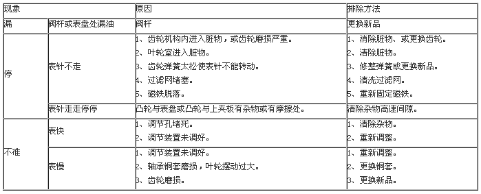計量加油槍的故障常為“一漏、二停、三不準”,現(xiàn)將故障的原因和排除方法列表如下,以供用戶在保養(yǎng)中參考。