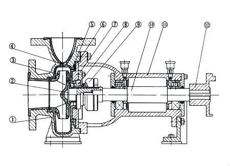 IHF為單級單吸式氟塑料合金化工離心泵,該泵是按照標準并結(jié)合非金屬泵的加工工藝設(shè)計生產(chǎn)。泵體采用金屬外殼內(nèi)襯聚全氟乙丙烯(F46),泵蓋、葉輪和軸套均用金屬嵌件外包氟塑料整體燒結(jié)壓制成型,軸封采用四氟填充材料,進出口均采用鑄鋼體加固。